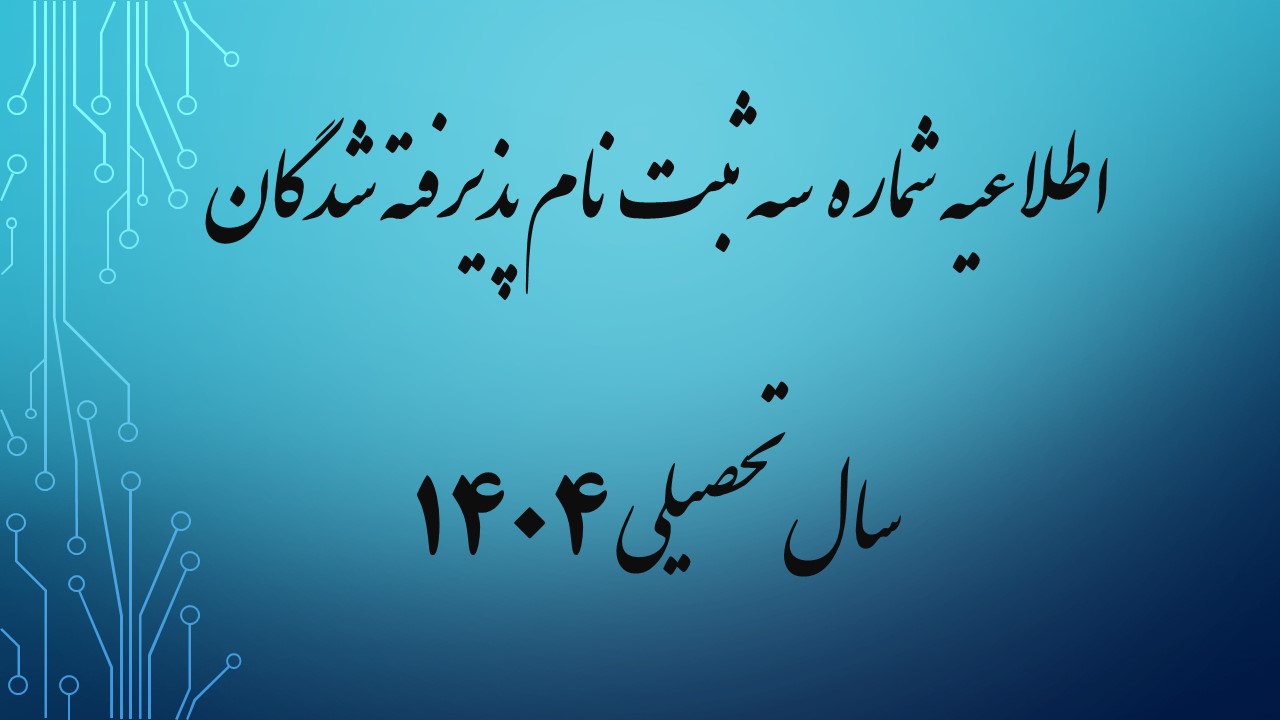 اطلاعیه شماره 3 ثبت نام پذیرفته شدگان سال تحصیلی 1405-1404 (ویژه مقطع کاردانی ورودی مهر)